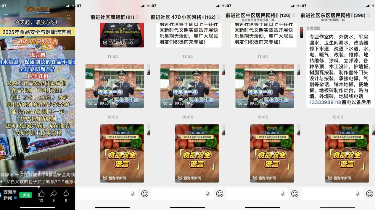 活动现场,志愿者还重点讲解了“三无”食品、假冒伪劣食品的辨别技巧,教居民通过查看包装完整性、生产日期、生产许可证编号等信息,避开消费陷阱。考虑到部分居民习惯通过线上渠道获取信息,社区还同步通过各居民网格群、商铺群推送食品安全辟谣文章和短视频,打破时间与空间的限制,让更多居民随时随地学习辟谣知识,进一步拓宽科普覆盖范围。