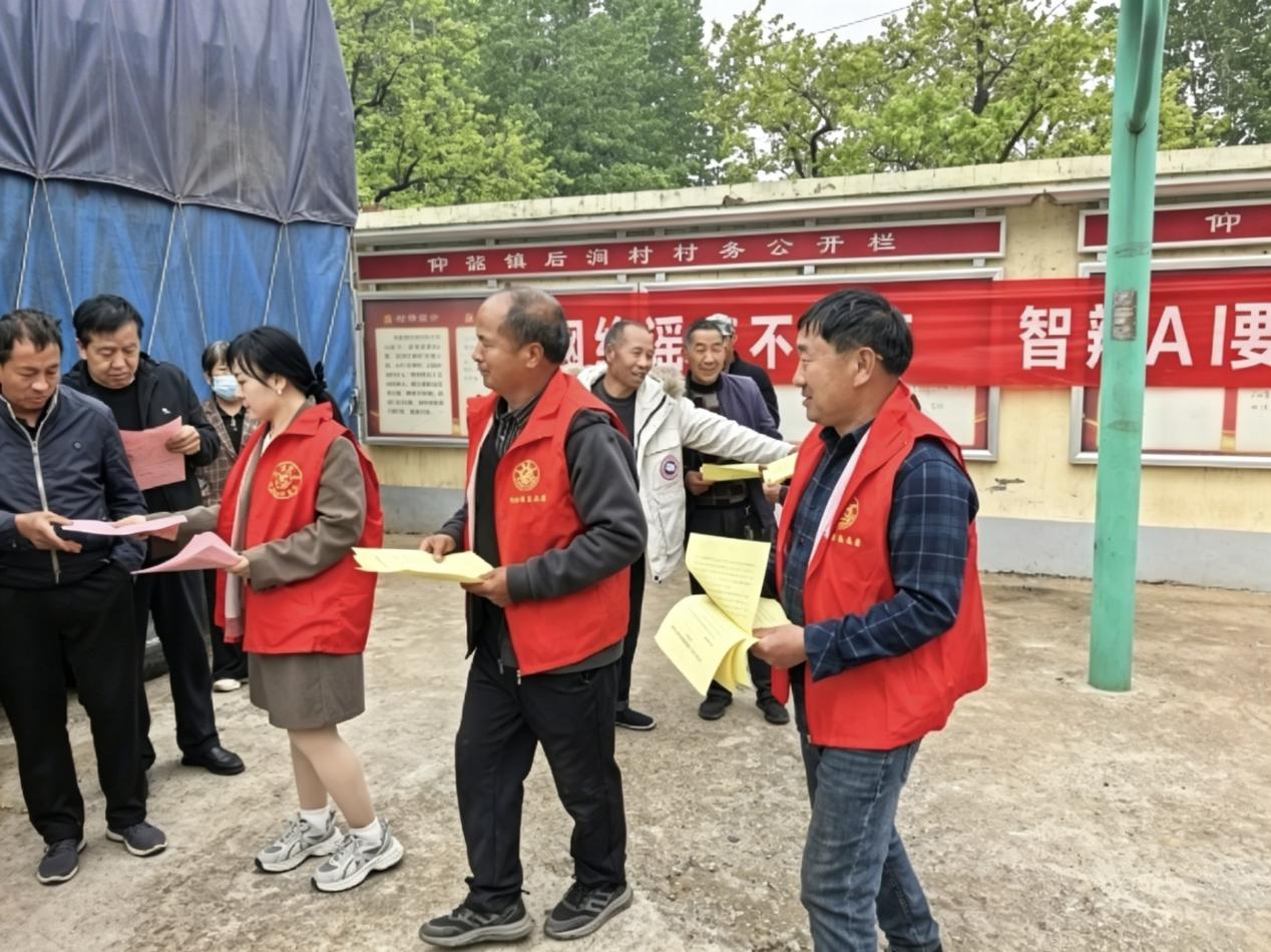 线下,集中组织群众观看AI辟谣警示视频,拆解智能化网络谣言的生成机制与传播套路,同时组织志愿者深入后涧村等村组,在村务公开栏、群众活动集中点位张贴宣传横幅、发放宣传资料,面对面为村民讲解AI换脸、语音合成等新型造谣手段,切实纠正群众“有图有视频=有真相”的认知误区。